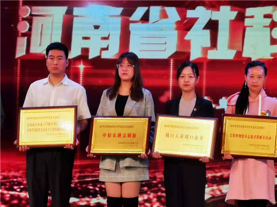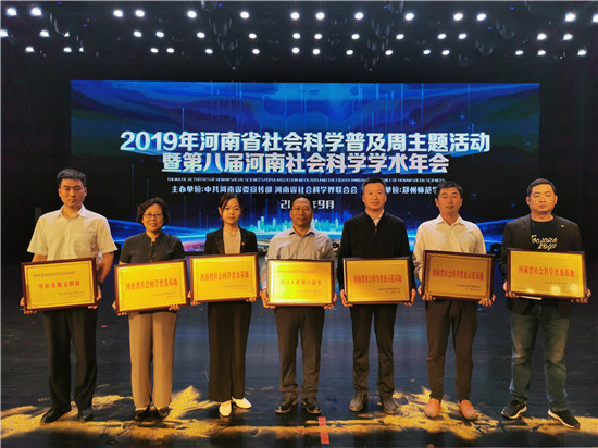 9月19日下午,由河南省委宣传部、河南省社科联联合主办的“2019年河南省社科普及周主题活动暨第八届河南社会科学学术年会”在郑州师范学院举行,在活动现场,省社科联为我市获得河南省社会科学普及 基地的周口华威民俗文化博物苑、周口市关帝庙民俗博物馆、项城市博物馆颁发了证书,同时也为获得河南省社会科学普及示范基地的周口市文化艺术中心和淮阳县太昊陵授牌,另外,市社科联开展的“周口人讲周 口故事”和周口华威民俗文化博物苑开展的“中原民俗文明展”也分别被颁发“2019河南省社科普及优秀活动项目”的奖牌。
